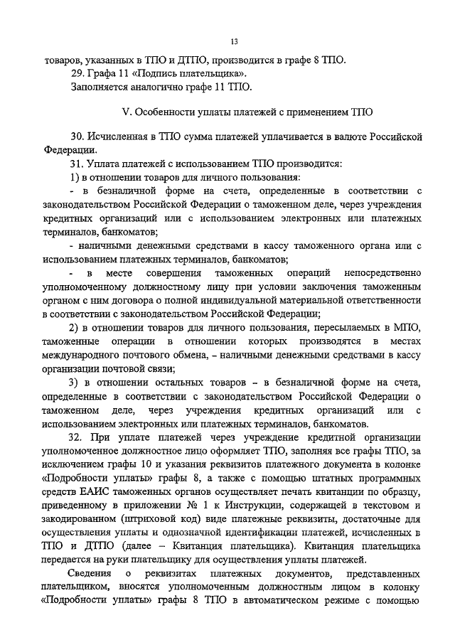 "ОБ УТВЕРЖДЕНИИ ИНСТРУКЦИИ О ПРИМЕНЕНИИ ТАМОЖЕННОГО ПРИХОДНОГО ОРДЕРА"