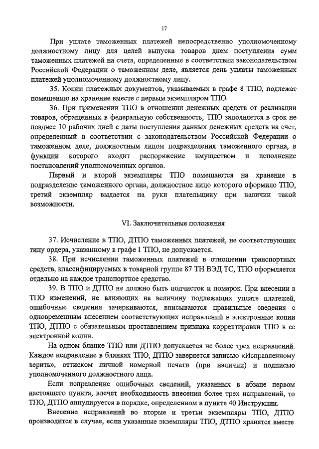 "ОБ УТВЕРЖДЕНИИ ИНСТРУКЦИИ О ПРИМЕНЕНИИ ТАМОЖЕННОГО ПРИХОДНОГО ОРДЕРА"
