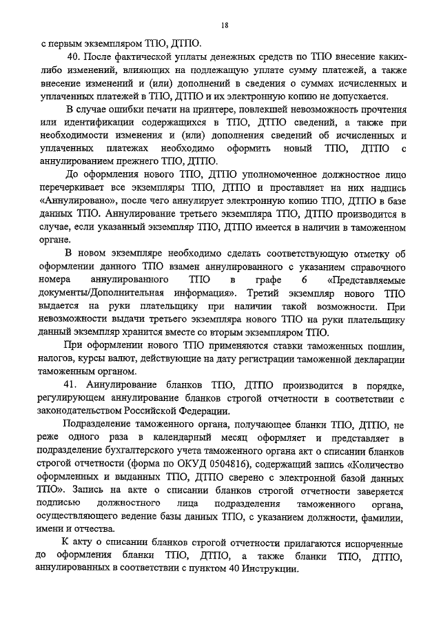 "ОБ УТВЕРЖДЕНИИ ИНСТРУКЦИИ О ПРИМЕНЕНИИ ТАМОЖЕННОГО ПРИХОДНОГО ОРДЕРА"