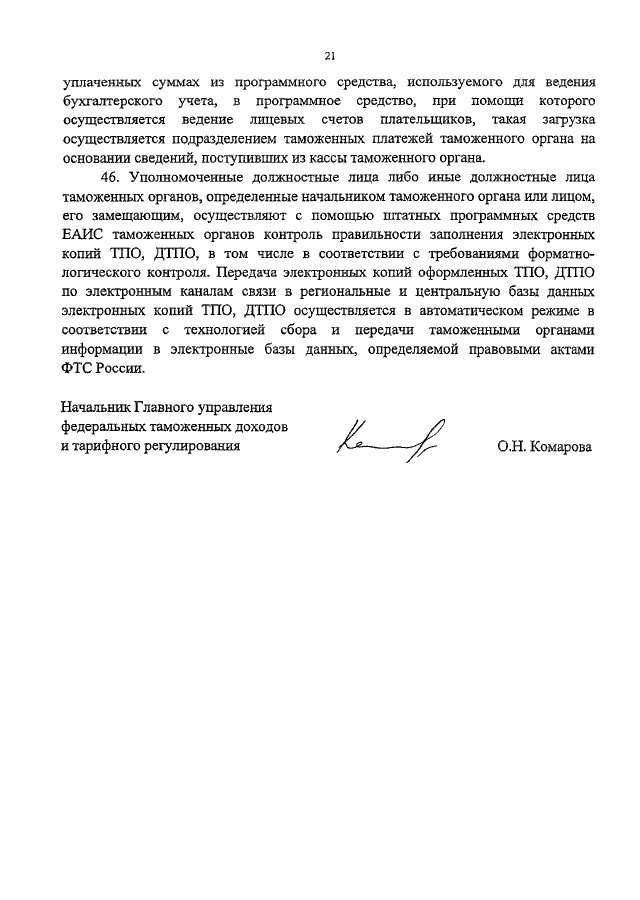 "ОБ УТВЕРЖДЕНИИ ИНСТРУКЦИИ О ПРИМЕНЕНИИ ТАМОЖЕННОГО ПРИХОДНОГО ОРДЕРА"