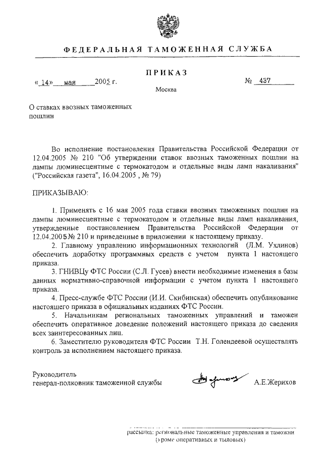 ПРИКАЗ ФТС РФ от 14.05.2005 N 437