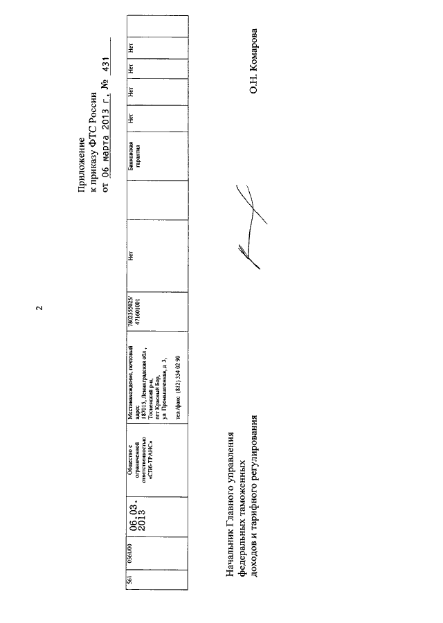 ПРИКАЗ ФТС РФ от 06.03.2013 N 431