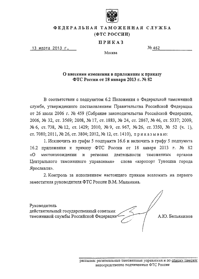 ПРИКАЗ ФТС РФ от 13.03.2013 N 462