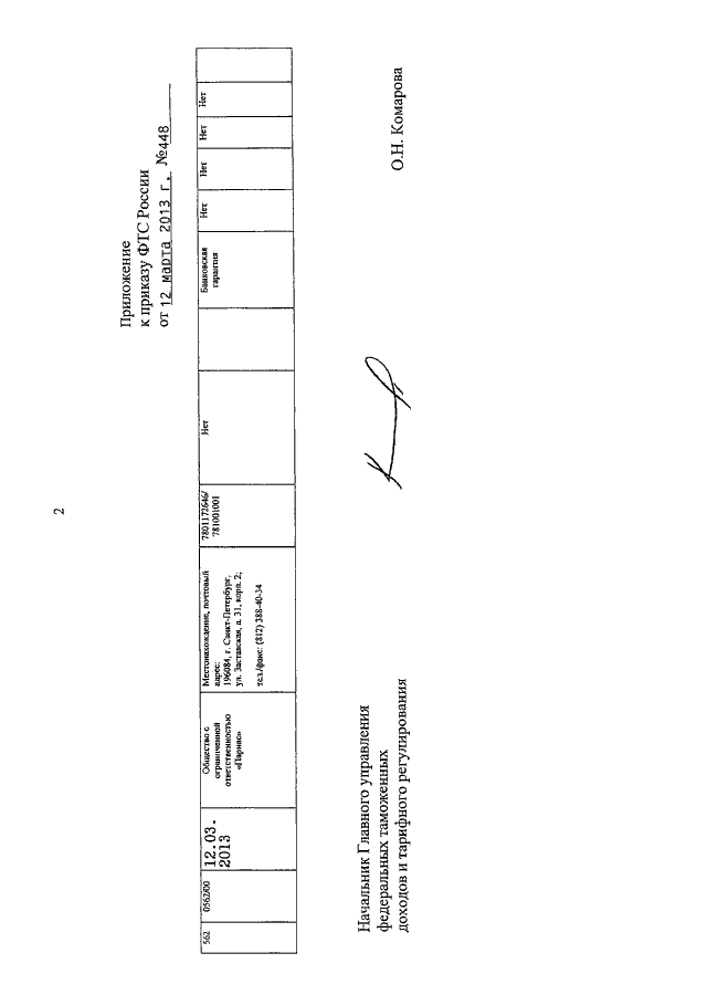 ПРИКАЗ ФТС РФ от 12.03.2013 N 448