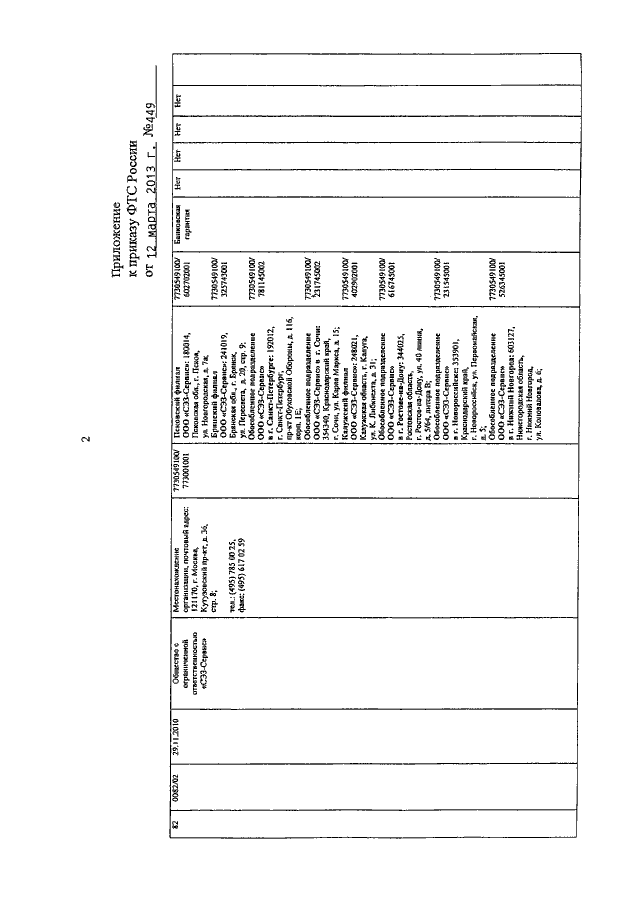 ПРИКАЗ ФТС РФ от 12.03.2013 N 449