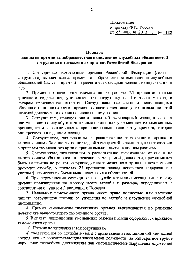 ПРИКАЗ ФТС РФ от 28.01.2013 N 132