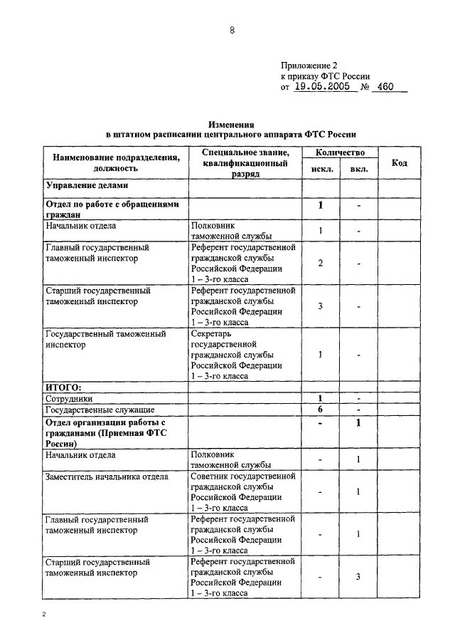 ПРИКАЗ ФТС РФ от 19.05.2005 N 460