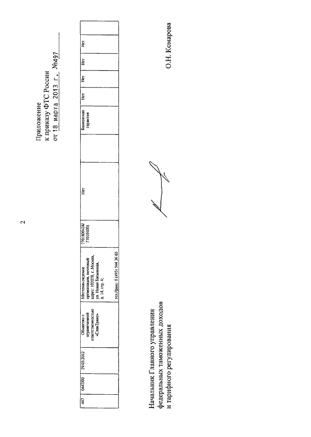 ПРИКАЗ ФТС РФ от 18.03.2013 N 497