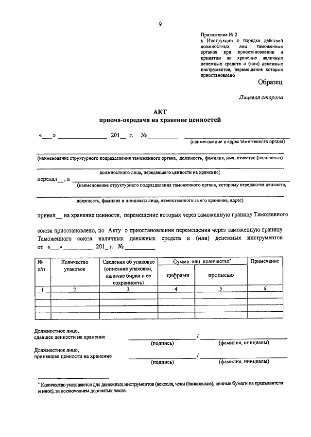 "ОБ УТВЕРЖДЕНИИ ИНСТРУКЦИИ О ПОРЯДКЕ ДЕЙСТВИЙ ДОЛЖНОСТНЫХ ЛИЦ ТАМОЖЕННЫХ ОРГАНОВ ПРИ ПРИОСТАНОВЛЕНИИ И ПРИНЯТИИ НА ХРАНЕНИЕ НАЛИЧНЫХ ДЕНЕЖНЫХ СРЕДСТВ И (ИЛИ) ДЕНЕЖНЫХ ИНСТРУМЕНТОВ, ПЕРЕМЕЩЕНИЕ КОТОРЫХ ПРИОСТАНОВЛЕНО"