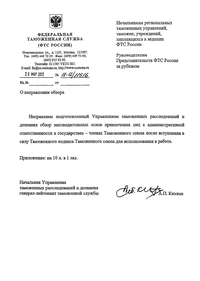 ПИСЬМО ФТС РФ от 20.03.2013 N 18-12/11516 "О НАПРАВЛЕНИИ ОБЗОРА" (вместе с "ОБЗОРОМ ЗАКОНОДАТЕЛЬНЫХ ОСНОВ ПРИВЛЕЧЕНИЯ ЛИЦ К