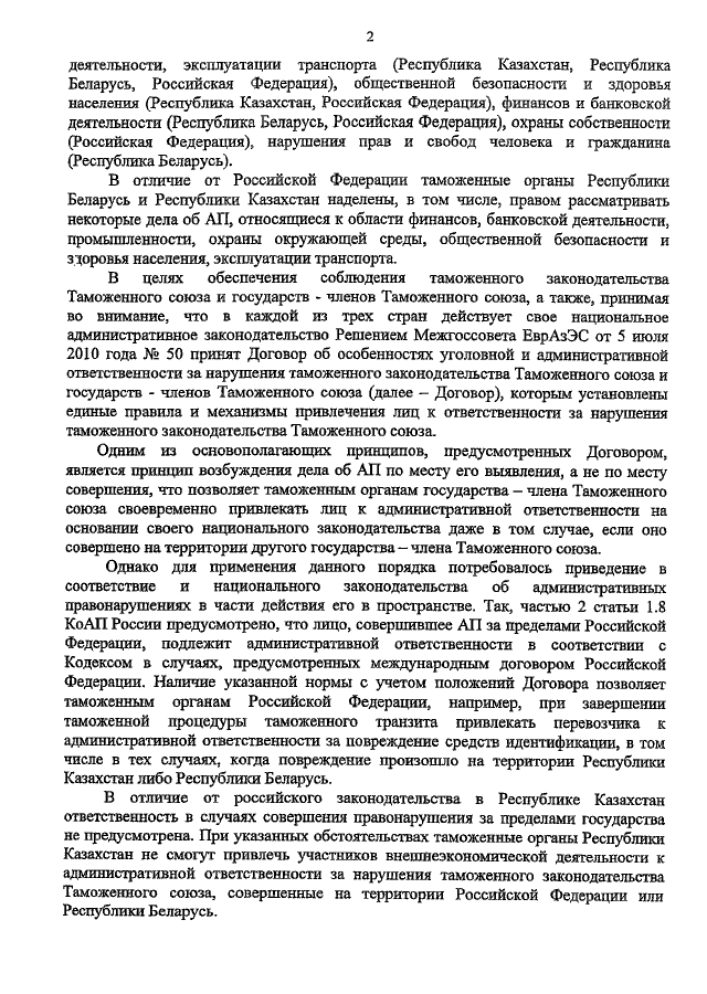 (вместе с "ОБЗОРОМ ЗАКОНОДАТЕЛЬНЫХ ОСНОВ ПРИВЛЕЧЕНИЯ ЛИЦ К АДМИНИСТРАТИВНОЙ ОТВЕТСТВЕННОСТИ В ГОСУДАРСТВАХ - ЧЛЕНАХ ТАМОЖЕННОГО СОЮЗА ПОСЛЕ ВСТУПЛЕНИЯ В СИЛУ ТАМОЖЕННОГО КОДЕКСА ТАМОЖЕННОГО СОЮЗА")