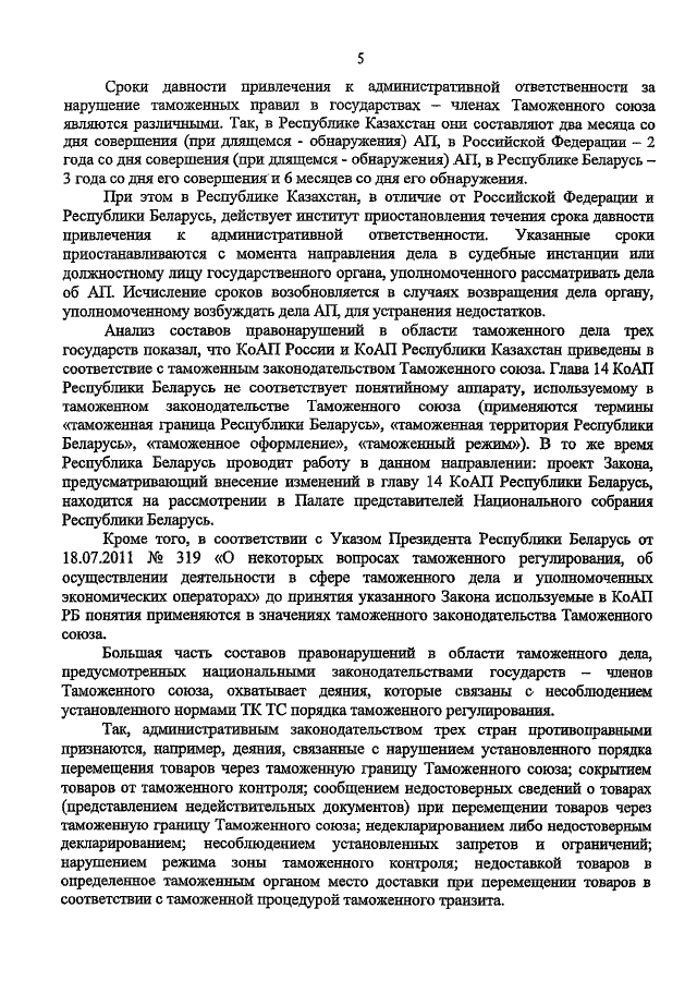 (вместе с "ОБЗОРОМ ЗАКОНОДАТЕЛЬНЫХ ОСНОВ ПРИВЛЕЧЕНИЯ ЛИЦ К АДМИНИСТРАТИВНОЙ ОТВЕТСТВЕННОСТИ В ГОСУДАРСТВАХ - ЧЛЕНАХ ТАМОЖЕННОГО СОЮЗА ПОСЛЕ ВСТУПЛЕНИЯ В СИЛУ ТАМОЖЕННОГО КОДЕКСА ТАМОЖЕННОГО СОЮЗА")