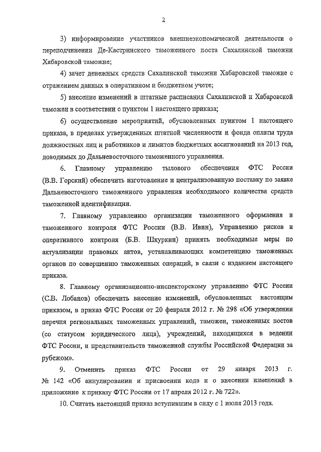 "О ПЕРЕПОДЧИНЕНИИ ДЕ-КАСТРИНСКОГО ТАМОЖЕННОГО ПОСТА САХАЛИНСКОЙ ТАМОЖНИ И ВНЕСЕНИИ ИЗМЕНЕНИЙ В ПРИЛОЖЕНИЕ К ПРИКАЗУ ФТС РОССИИ ОТ 17 АПРЕЛЯ 2012 Г. N 722"