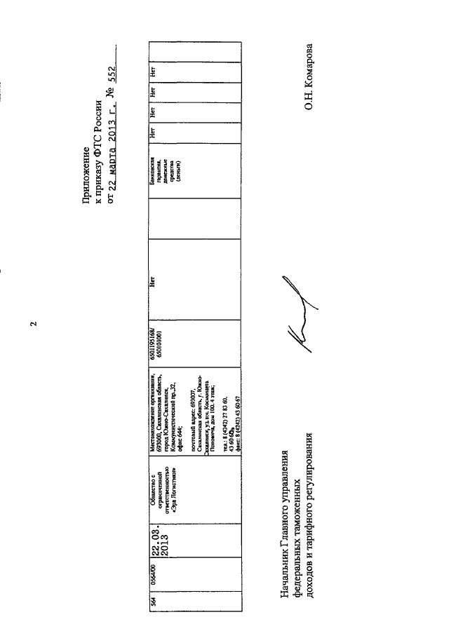 ПРИКАЗ ФТС РФ от 22.03.2013 N 552