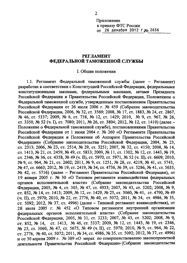 ПРИКАЗ ФТС РФ от 26.12.2012 N 2656