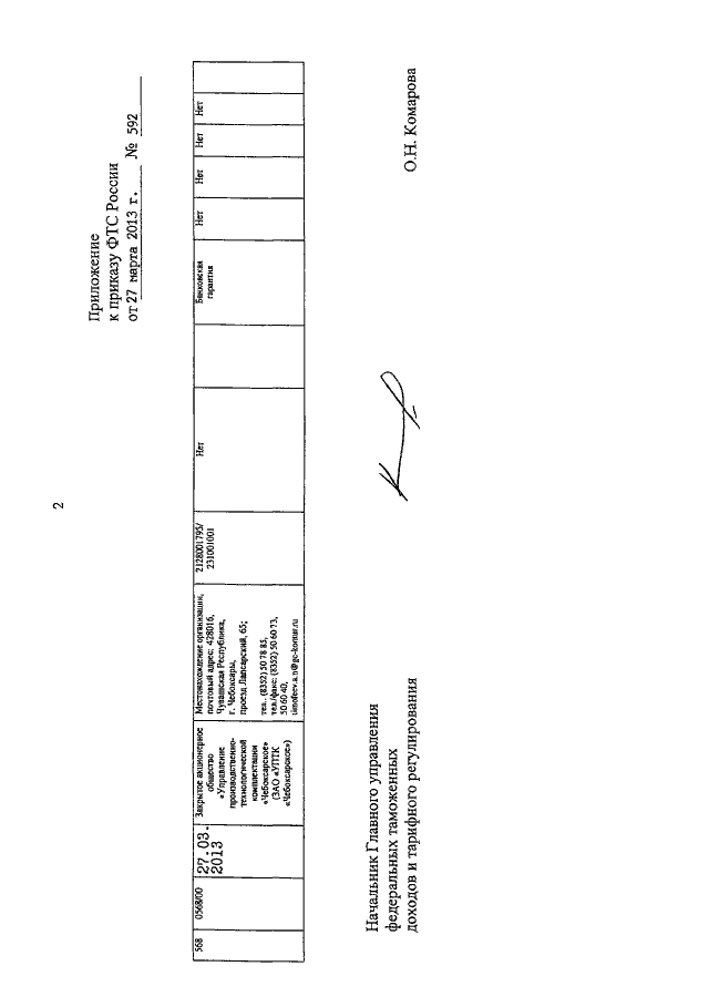 ПРИКАЗ ФТС РФ от 27.03.2013 N 592