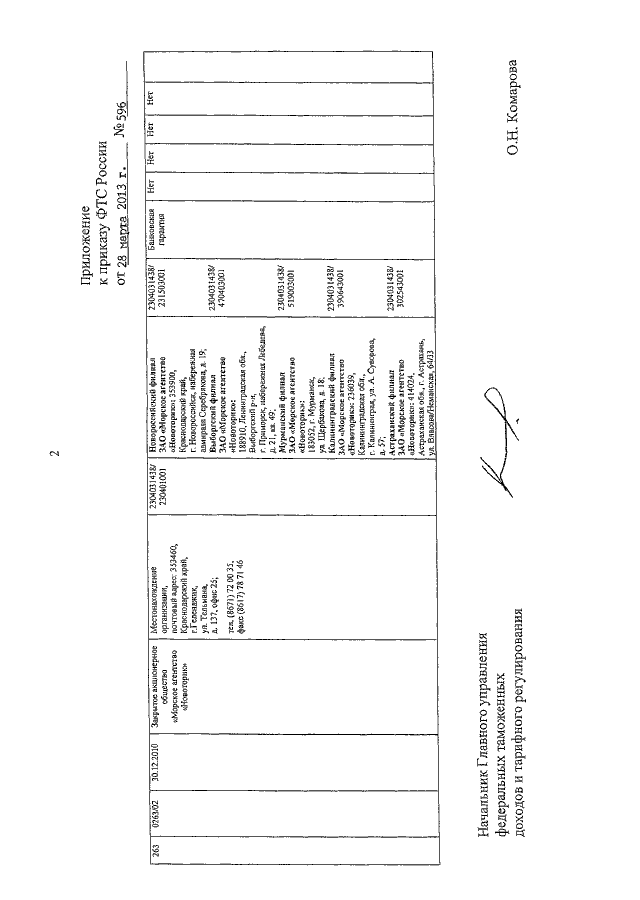 ПРИКАЗ ФТС РФ от 28.03.2013 N 596