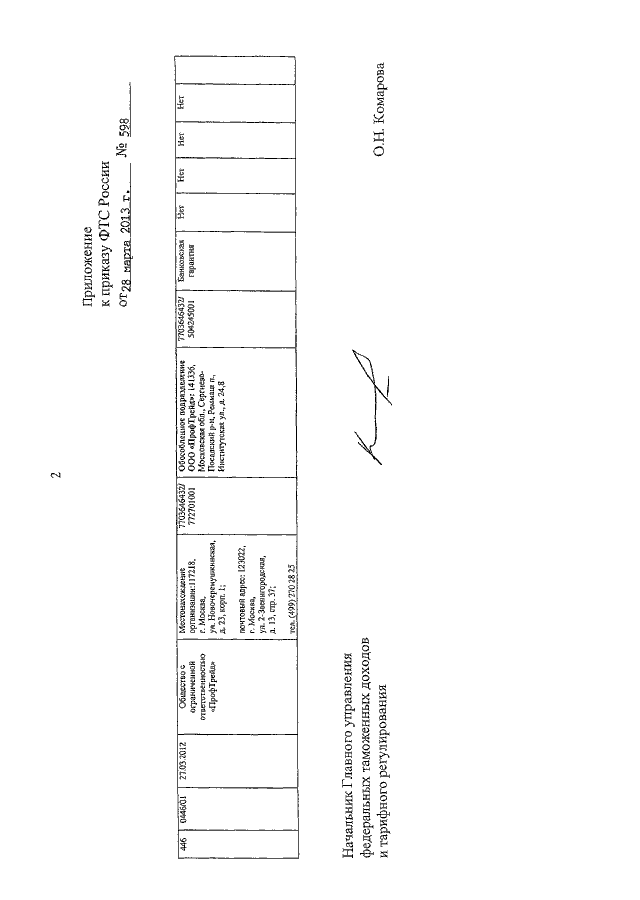 ПРИКАЗ ФТС РФ от 28.03.2013 N 598