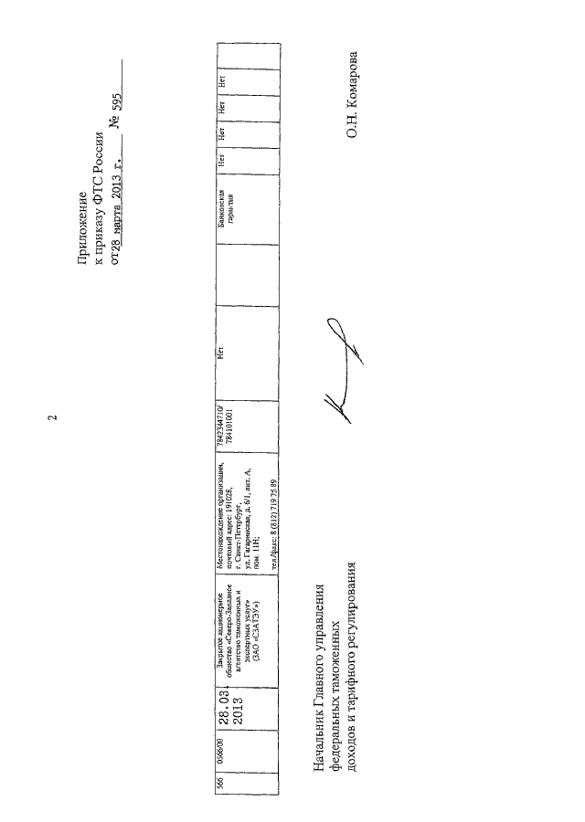 ПРИКАЗ ФТС РФ от 28.03.2013 N 595