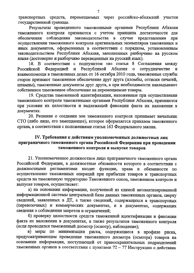 "ОБ УТВЕРЖДЕНИИ ИНСТРУКЦИИ О ДЕЙСТВИЯХ ДОЛЖНОСТНЫХ ЛИЦ СПЕЦИАЛИЗИРОВАННОГО ТАМОЖЕННОГО ОРГАНА В РЕСПУБЛИКЕ АБХАЗИЯ"