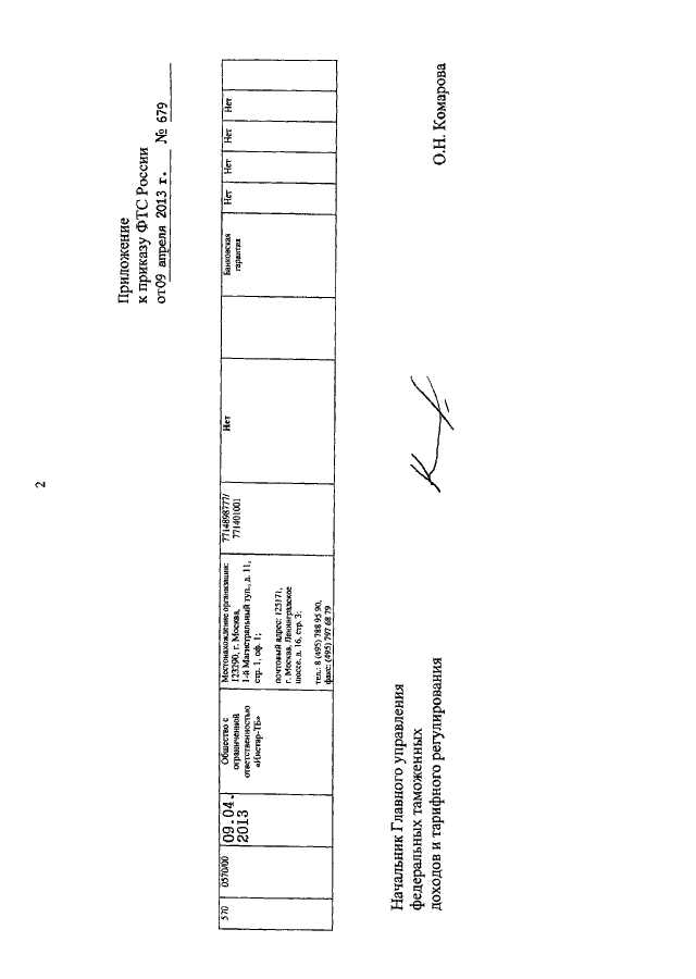 ПРИКАЗ ФТС РФ от 09.04.2013 N 679