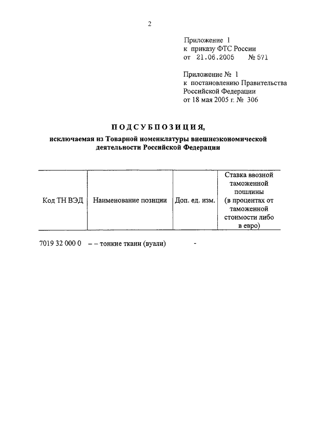 ПРИКАЗ ФТС РФ от 21.06.2005 N 571