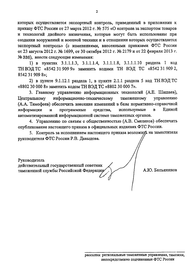 "О ВНЕСЕНИИ ИЗМЕНЕНИЙ В ПРИЛОЖЕНИЕ К ПРИКАЗУ ГТК РОССИИ ОТ 23 МАЯ 1996 Г. N 315 И В ПРИЛОЖЕНИЕ К ПРИКАЗУ ФТС РОССИИ ОТ 27 МАРТА 2012 Г. N 575"