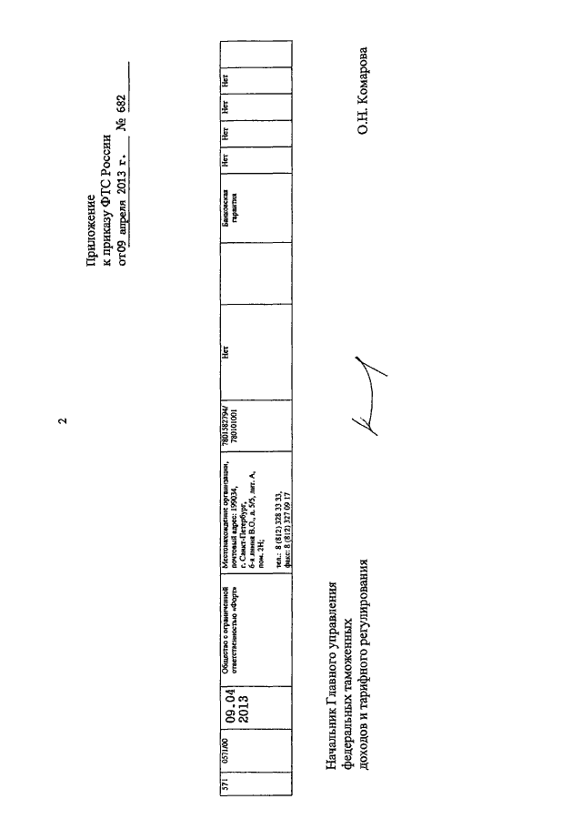 ПРИКАЗ ФТС РФ от 09.04.2013 N 682