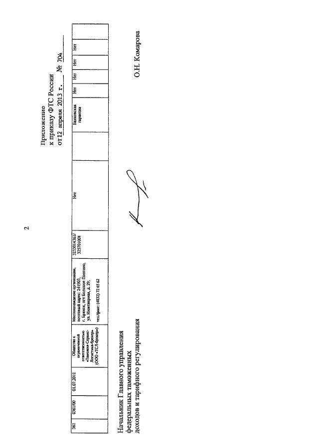 ПРИКАЗ ФТС РФ от 12.04.2013 N 704