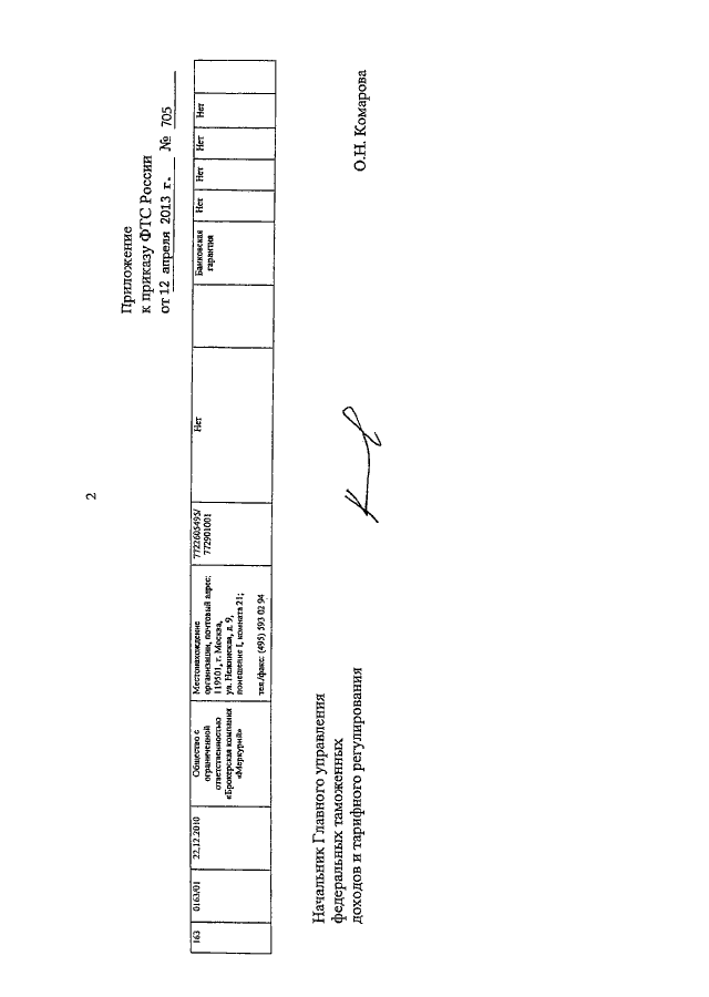 ПРИКАЗ ФТС РФ от 12.04.2013 N 705