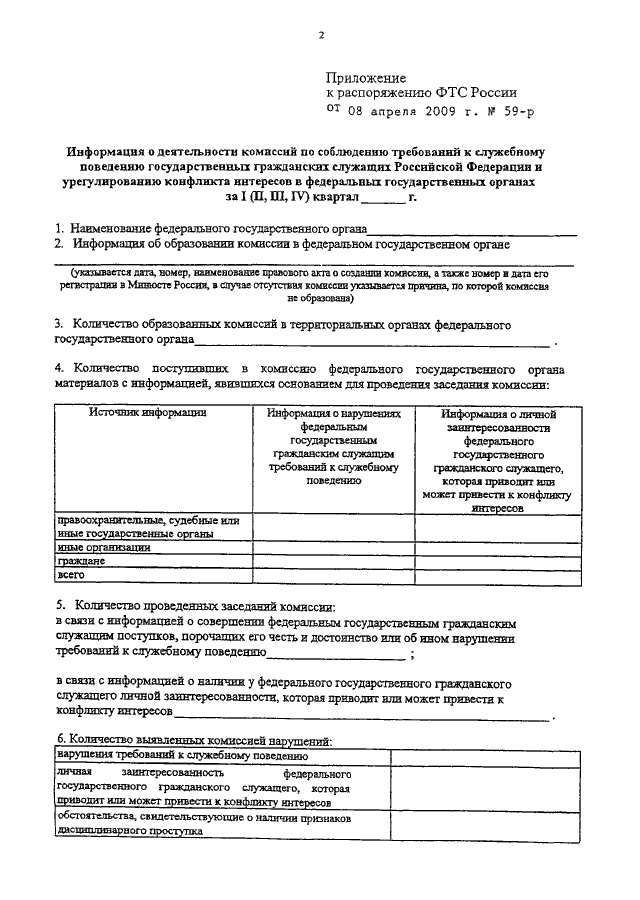 РАСПОРЯЖЕНИЕ ФТС РФ от 08.04.2009 N 59-р