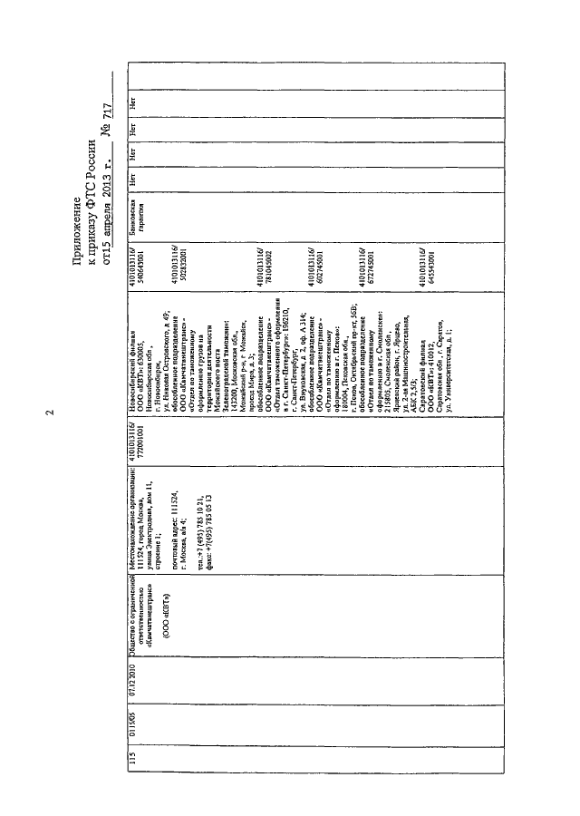 ПРИКАЗ ФТС РФ от 15.04.2013 N 717