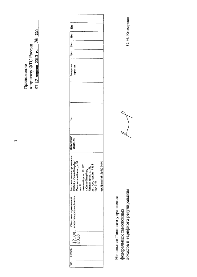 ПРИКАЗ ФТС РФ от 17.04.2013 N 740