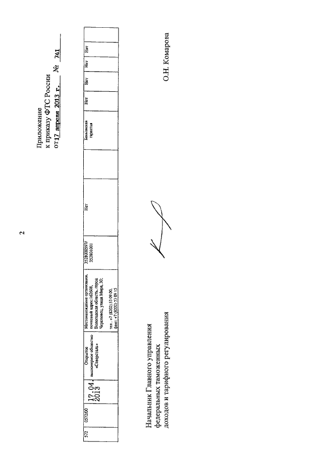 ПРИКАЗ ФТС РФ от 17.04.2013 N 741