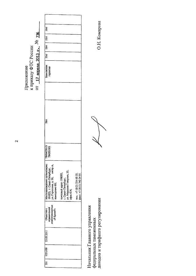 ПРИКАЗ ФТС РФ от 17.04.2013 N 736