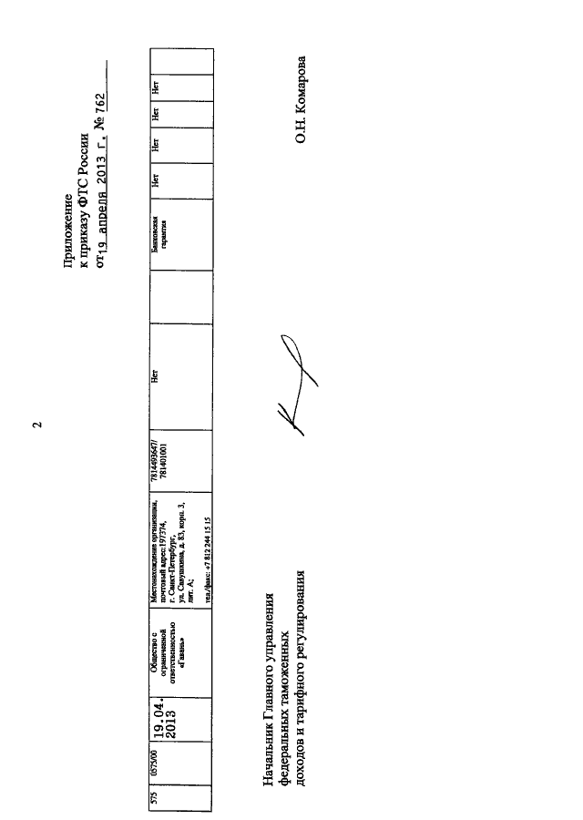 ПРИКАЗ ФТС РФ от 19.04.2013 N 762