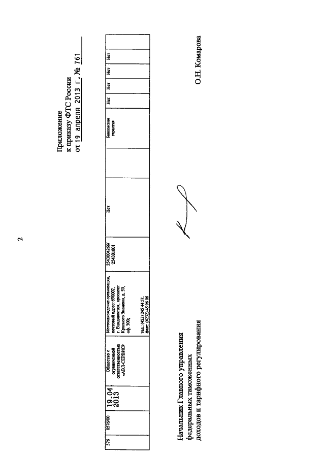 ПРИКАЗ ФТС РФ от 19.04.2013 N 761