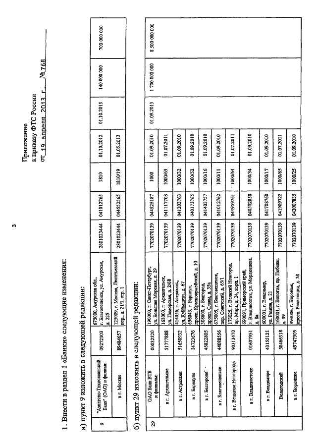 ПРИКАЗ ФТС РФ от 19.04.2013 N 768