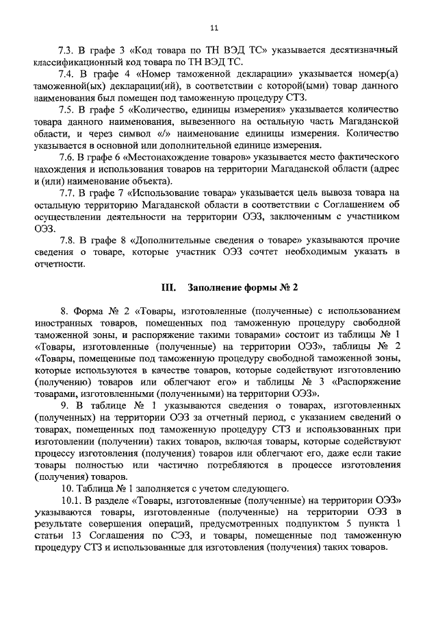 "ОБ УТВЕРЖДЕНИИ ФОРМ ОТЧЕТНОСТИ О ТОВАРАХ, ПОМЕЩЕННЫХ ПОД ТАМОЖЕННУЮ ПРОЦЕДУРУ СВОБОДНОЙ ТАМОЖЕННОЙ ЗОНЫ, И ТОВАРАХ, ИЗГОТОВЛЕННЫХ (ПОЛУЧЕННЫХ) С ИСПОЛЬЗОВАНИЕМ ИНОСТРАННЫХ ТОВАРОВ, ПОМЕЩЕННЫХ ПОД ТАМОЖЕННУЮ ПРОЦЕДУРУ СВОБОДНОЙ ТАМОЖЕННОЙ ЗОНЫ НА ТЕРРИТОРИИ ОСОБОЙ ЭКОНОМИЧЕСКОЙ ЗОНЫ В МАГАДАНСКОЙ ОБЛАСТИ, ПОРЯДКА ИХ ЗАПОЛНЕНИЯ И ПОРЯДКА ПРЕДСТАВЛЕНИЯ ТАМОЖЕННОМУ ОРГАНУ ОТЧЕТНОСТИ О ТАКИХ ТОВАРАХ"