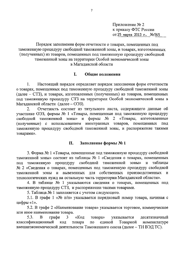 ПРИКАЗ ФТС РФ от 25.03.2013 N 565