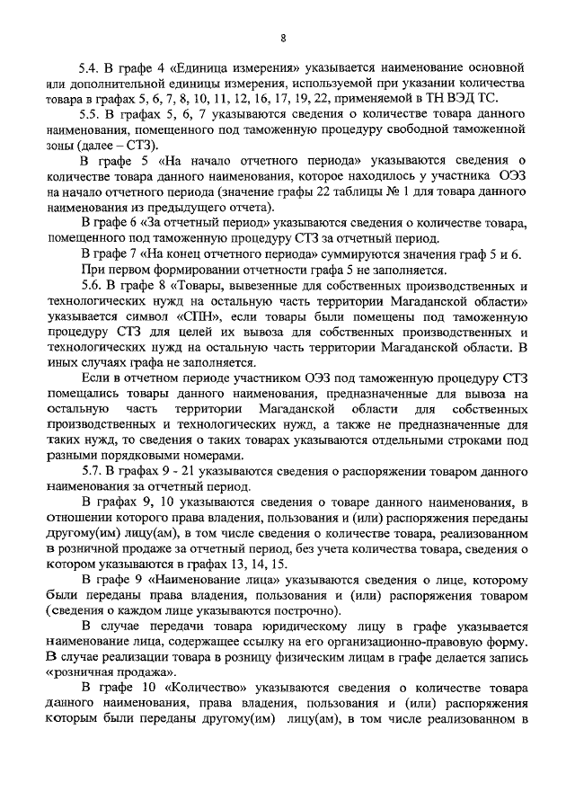 "ОБ УТВЕРЖДЕНИИ ФОРМ ОТЧЕТНОСТИ О ТОВАРАХ, ПОМЕЩЕННЫХ ПОД ТАМОЖЕННУЮ ПРОЦЕДУРУ СВОБОДНОЙ ТАМОЖЕННОЙ ЗОНЫ, И ТОВАРАХ, ИЗГОТОВЛЕННЫХ (ПОЛУЧЕННЫХ) С ИСПОЛЬЗОВАНИЕМ ИНОСТРАННЫХ ТОВАРОВ, ПОМЕЩЕННЫХ ПОД ТАМОЖЕННУЮ ПРОЦЕДУРУ СВОБОДНОЙ ТАМОЖЕННОЙ ЗОНЫ НА ТЕРРИТОРИИ ОСОБОЙ ЭКОНОМИЧЕСКОЙ ЗОНЫ В МАГАДАНСКОЙ ОБЛАСТИ, ПОРЯДКА ИХ ЗАПОЛНЕНИЯ И ПОРЯДКА ПРЕДСТАВЛЕНИЯ ТАМОЖЕННОМУ ОРГАНУ ОТЧЕТНОСТИ О ТАКИХ ТОВАРАХ"