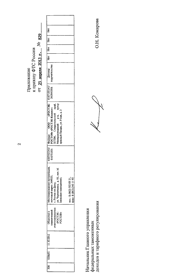ПРИКАЗ ФТС РФ от 25.04.2013 N 829