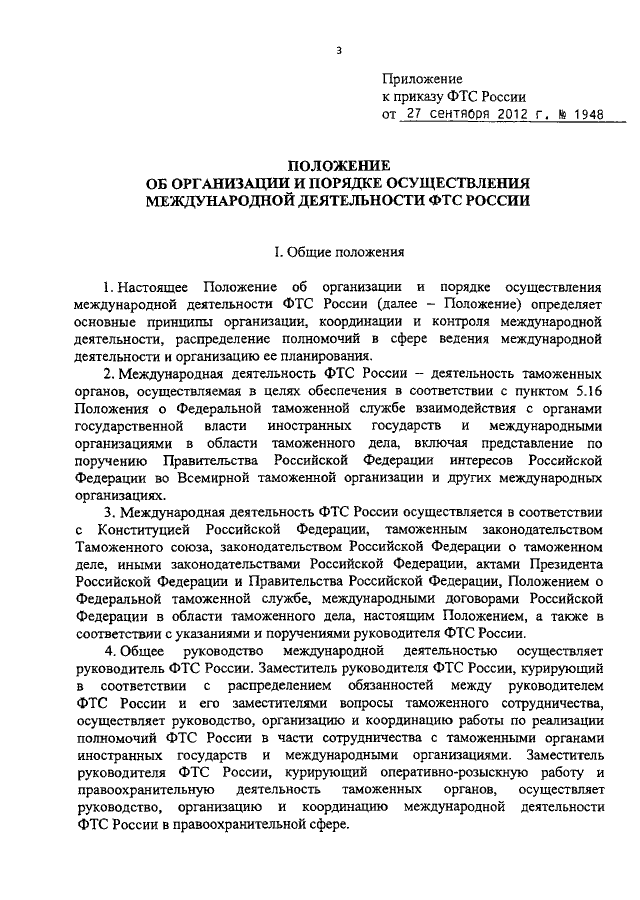 ПРИКАЗ ФТС РФ от 27.09.2012 N 1948