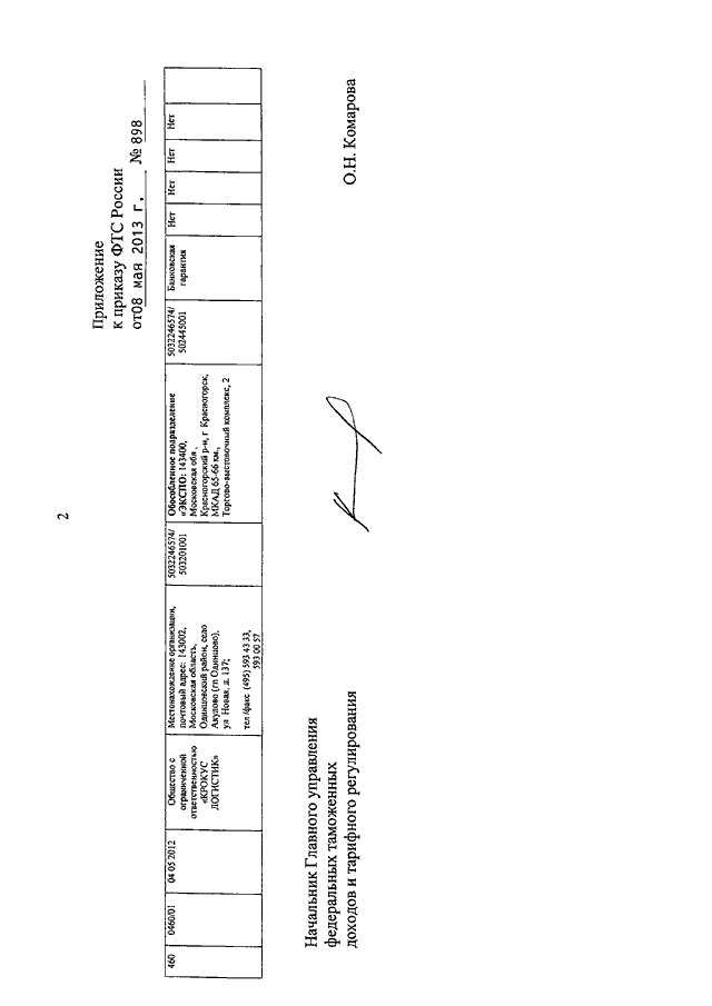 ПРИКАЗ ФТС РФ от 08.05.2013 N 898