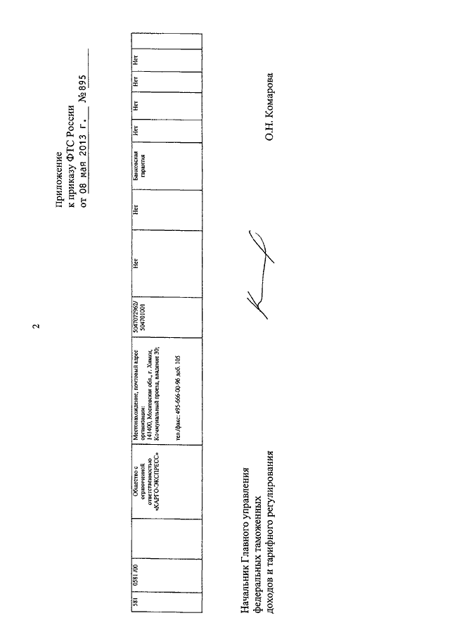 ПРИКАЗ ФТС РФ от 08.05.2013 N 895