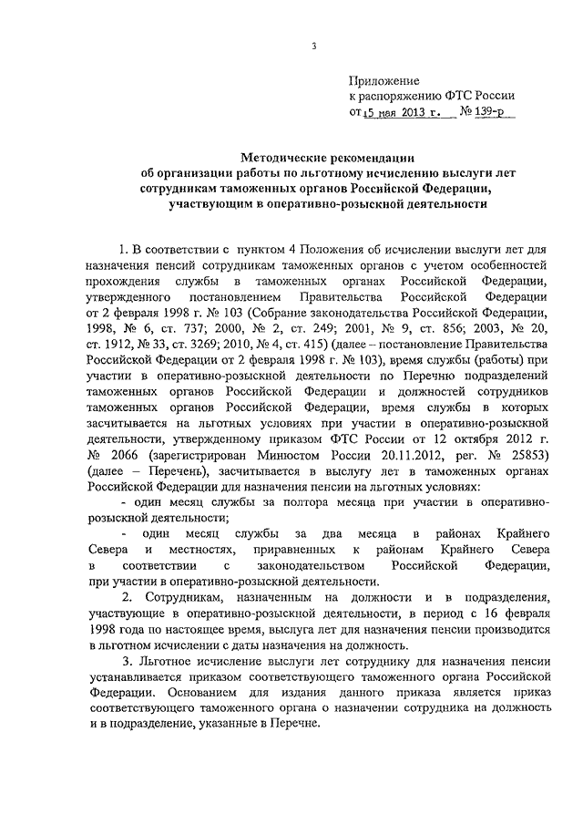 РАСПОРЯЖЕНИЕ ФТС РФ от 15.05.2013 N 139-р