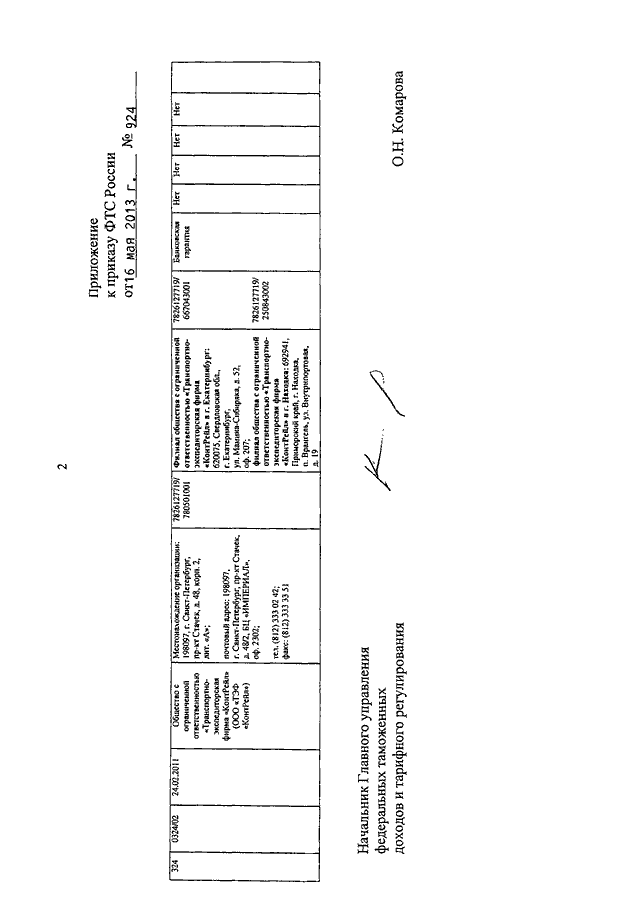 ПРИКАЗ ФТС РФ от 16.05.2013 N 924