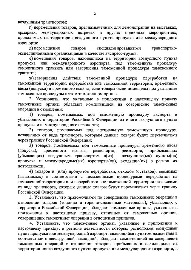 "О КОМПЕТЕНЦИИ ТАМОЖЕННЫХ ОРГАНОВ ПО СОВЕРШЕНИЮ ТАМОЖЕННЫХ ОПЕРАЦИЙ В ОТНОШЕНИИ ТОВАРОВ, ПЕРЕМЕЩАЕМЫХ ВОЗДУШНЫМ ТРАНСПОРТОМ"