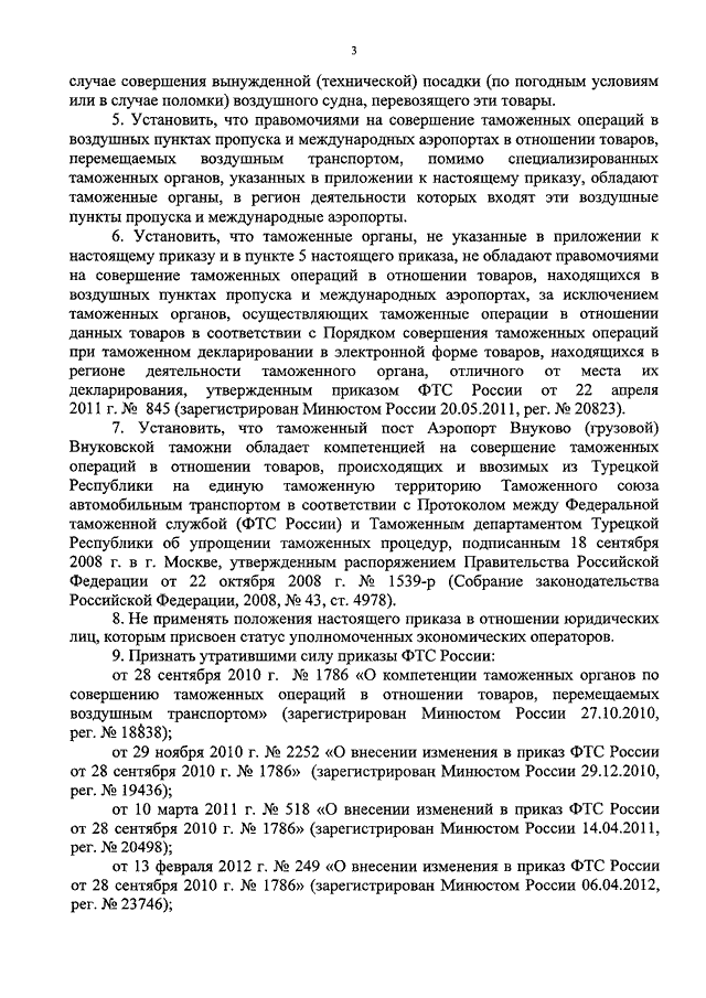"О КОМПЕТЕНЦИИ ТАМОЖЕННЫХ ОРГАНОВ ПО СОВЕРШЕНИЮ ТАМОЖЕННЫХ ОПЕРАЦИЙ В ОТНОШЕНИИ ТОВАРОВ, ПЕРЕМЕЩАЕМЫХ ВОЗДУШНЫМ ТРАНСПОРТОМ"
