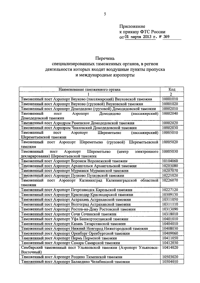 ПРИКАЗ ФТС РФ от 01.03.2013 N 369